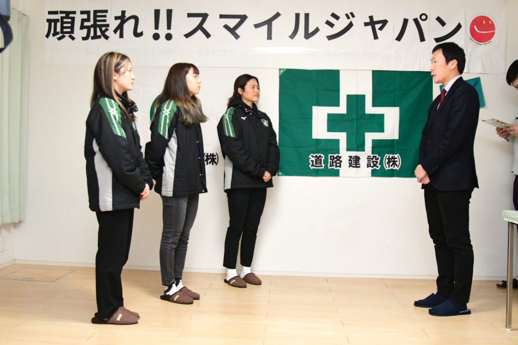 1月14日(水)に道路建設ペリグリンでは、来月開催されるミラノ・コルティナ2026冬季オリンピックの代表である細山田選手、前田選手、輪島選手の壮行会を行いました。
